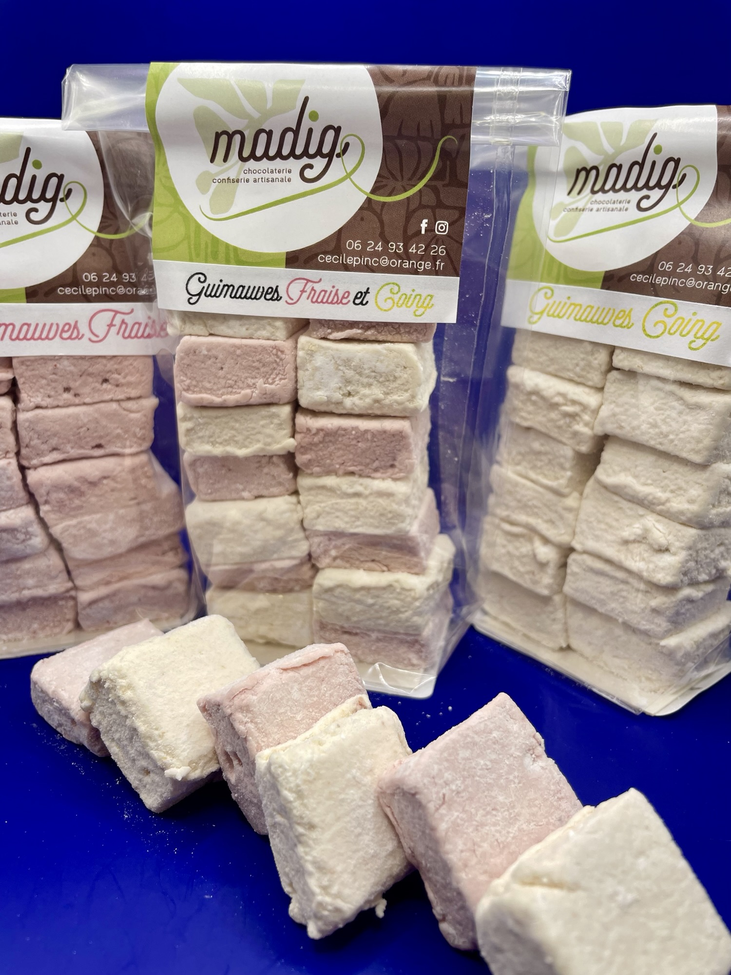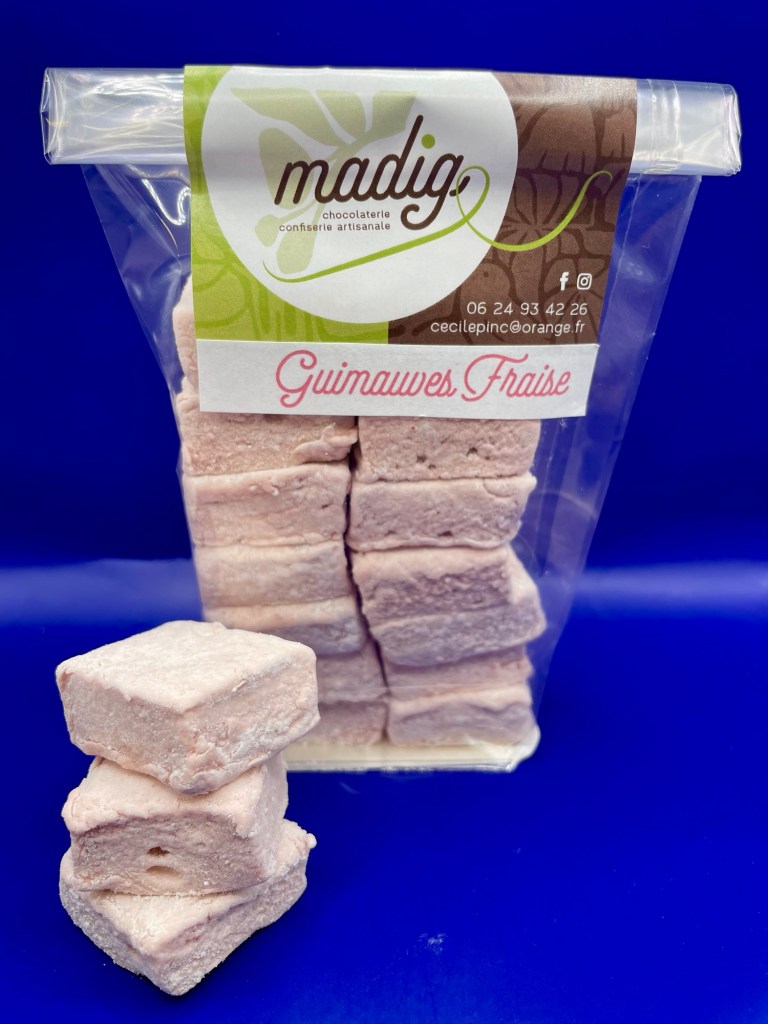 - Ingrédients : sucre de canne blond bio, purée de fraises bio et/ou purée de coings, sucre inverti, gélatine de bœuf, eau.